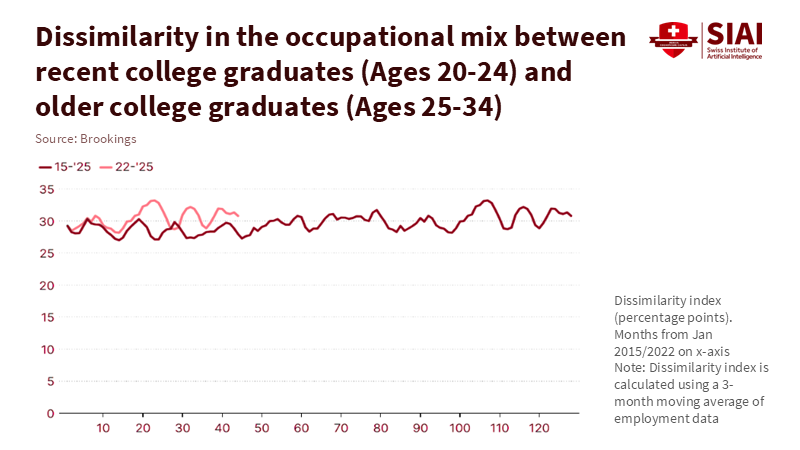 Evidence regarding jobs supports this narrative. The new Yale-Brookings report indicates that no widespread employment disruption has been linked to generative AI so far. This aligns with recent private reports indicating increased layoffs and weak hiring plans for 2025, with only a small portion explicitly tied to AI. Challenger, Gray & Christmas reported 17,375 job cuts attributed to AI through September. While significant for those affected, this figure is small compared to the nearly one million planned reductions for the year. The key takeaway is that while AI does have some impact on labor, the job loss directly caused by AI remains a small fraction of total turnover. Meanwhile, some companies report "technological updates" as a reason to slow or freeze entry-level hiring, which serves as an early warning for junior positions. For educators and policymakers, this means creating pathways for entry-level jobs before these roles become too scarce.