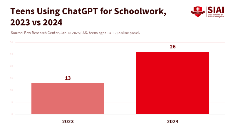 Pew Research Center. (2025, January 15). Share of teens using ChatGPT for schoolwork doubled from 2023 to 2024.