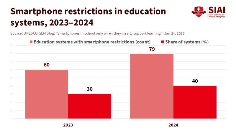The number that opened this piece—40% of systems restricting phones—reflects a social choice. We experimented with a tool in schools and found that without a clear set of rules, it disrupted the day. This lesson is relevant now. Generative AI is emerging faster than smartphones did and will infiltrate every subject and routine. A confusing message will result in inconsistent rules and new inequalities. A simple, firm AI policy in schools can counteract this. It can safeguard attention, minimize integrity risks, and still enable students to learn how to use AI effectively. The path is clear: establish strict rules for age and access, ensure strong logs, prioritize transparent procurement, and include built-in evaluations. If policymakers adopt this plan now, the following statistic we discuss won't be about bans. It will reflect how many more hours of genuine learning we can achieve—quietly, week after week, in classrooms that feel focused again.