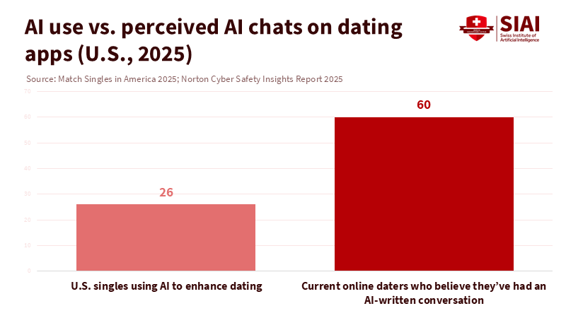 Usage is increasing rapidly. Match Group’s 2025 Singles in America study, conducted with Kinsey Institute researchers, reveals that about one in four U.S. singles now uses AI to improve some aspect of dating, with the highest growth among Gen Z. A separate 2025 Norton survey shows that six in ten online daters believe they have had at least one conversation written by AI. Major outlets have noted this shift as platforms introduce AI helpers to enhance profiles and generate conversation starters. At the same time, users adopt tools to improve matches and avoid awkward starts. Meanwhile, role-play and companion platforms keep millions engaged for extended periods—indicating that conversational AI is not just a novelty but a new form of social software. This scale is significant: the more common AI chat becomes, the easier it is for AI chatfishing to blend in unnoticed.