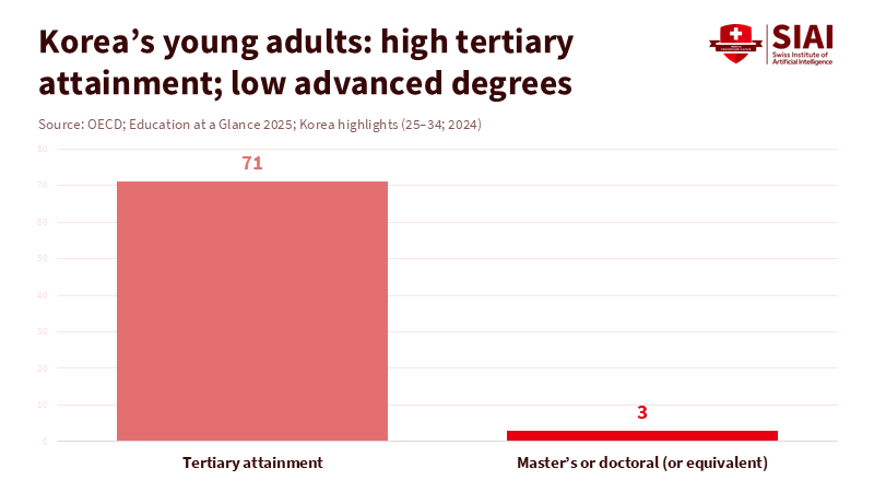 It is worth asking what the system seeks. Korea has strong educational results but relies on credentials. OECD data shows 71% of Koreans aged 25 to 34 have completed college, the highest rate among OECD countries. Only 3% of that group have a master’s or doctorate, well below the OECD average. This suggests degrees may be social symbols, while advanced study is just an addition. For the AI PhD fast-track program, that matters. It could raise the wrong question: "How fast can a student graduate?" Research should ask: "What did the student figure out, and how do we know it is correct?" If time is the primary measure, courses may cut the most challenging material, such as advanced math, statistics, and system iteration.