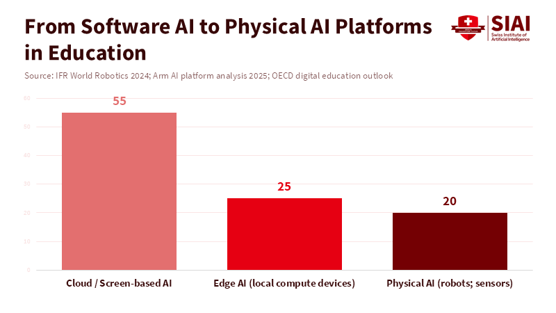 Automation is changing the world quickly. For example, factories added 4.28 million robots by 2023, a 10% increase in just one year. Now, intelligence is moving from distant data centers into machines that interact directly with the physical world. This shift means education policy must adapt quickly, as integrated systems combining software, sensors, processing, and mechanical components are becoming the norm. The main challenge is ensuring schools understand and address the mix of hardware, local processing, safety, and workforce changes as AI becomes both a physical and a digital force.