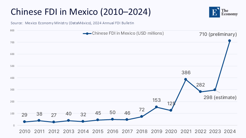 Mexico Economy Ministry (DataMéxico). (2025). Foreign Direct Investment from China, 1999–2024.