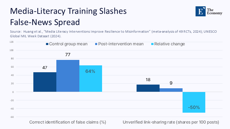Yet the national syllabus still treats media literacy as an elective. The Department of Education’s core guide, last updated in 2013, devotes more pages to billboard advertising than to deepfakes. Pilot modules at the University of the Philippines reach fewer than 10,000 students annually out of 28 million enrollees. Compare that with UNESCO’s 2024 call for universal media-information-literacy (MIL) benchmarks and its new self-paced course for adult educators, which has already been taken by 120,000 teachers worldwide. A meta-analysis of 49 MIL experiments involving over 81,000 participants shows median effect sizes equivalent to a 30% increase in false-claim detection and a 50% decrease in knee-jerk sharing. Rolling out a 20-hour practicum nationwide would cost roughly ₱900 per pupil—less than 1% of per-capita basic education spending—but could recoup four times that in economic productivity by reducing the labor hours lost to rumor-driven disruptions. Budget critics note the crumbling condition of classrooms, yet the 2025 budget already allocates ₱1.05 trillion to education, of which less than 0.1% is earmarked for building digital literacy capacity. The fiscal hurdle, therefore, is political will, not cash.
