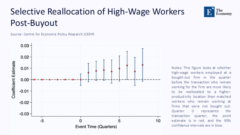 Complementing this micro view, the Emerging Data Collaborative Initiative (EDCI) reports that PE portfolio companies nevertheless added four net new hires per 100 existing employees in 2024, outpacing public peers even amid a deal slump. The key to reconciling the two findings is churn. Gross hiring masks targeted cuts and re‑allocations that disproportionately hit mid‑career staff—the very cohort most likely to mentor juniors. When we weigh jobs by tenure and training intensity rather than headcount, the apparent job‑creation premium flips sign, indicating a latent drain on firm‑specific human capital.