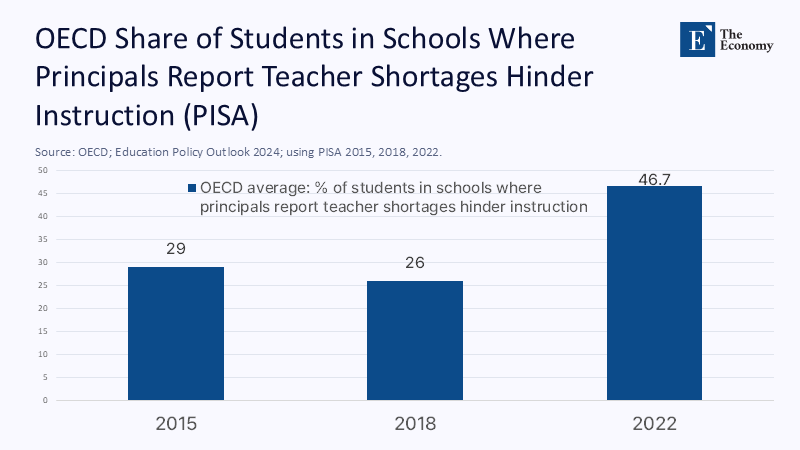 Schools and universities are labor markets with predictable, gendered spikes in time demand—pregnancy, infant care, elder care—that collide with rigid timetables. Globally, women make up about two-thirds of primary teachers and a majority at secondary levels. Yet, leadership remains disproportionately male, and systems face mounting teacher shortages projected to reach 44 million worldwide by 2030. Meanwhile, the share of students in OECD systems whose principals report teacher shortages rose from roughly 29% to nearly 47% between 2015 and 2022. These facts argue for administrative reforms that treat time as capital: schedule governance meetings inside core hours; align staff development with school-day coverage; extend or stagger nursery and after-school hours; and design parental-leave backfilling that does not penalize career trajectories. Where the teaching corps is heavily female but leadership is not, mentorship and transparent promotion criteria should be coupled with schedule redesign, not offered as substitutes for it. Administrators don't need a new ideology to act; they need a timetable that acknowledges heterogeneity in the constraint set.