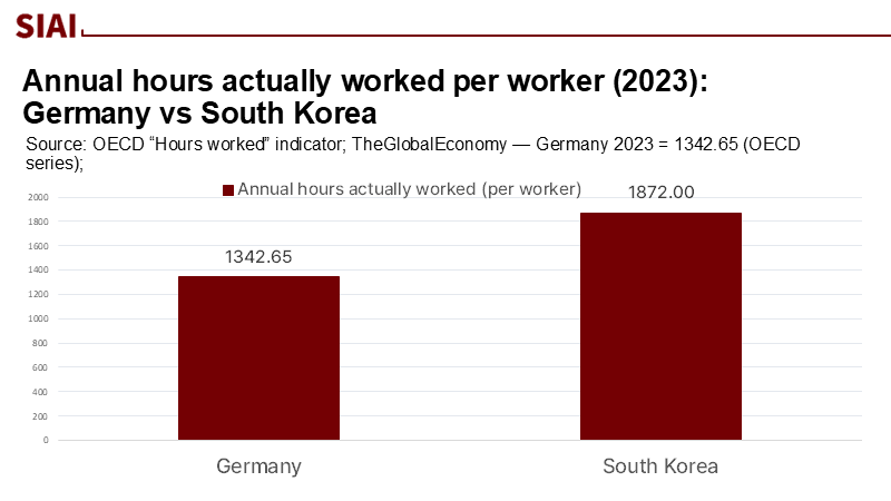 OECD. (2025). “Hours worked—Indicator” and data explorer (Germany and Korea, 2023 values). Paris: OECD.