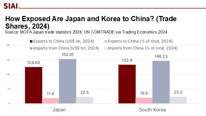 Trading Economics (UN COMTRADE). (2025). Japan exports to China (2024); South Korea imports from China (2024).