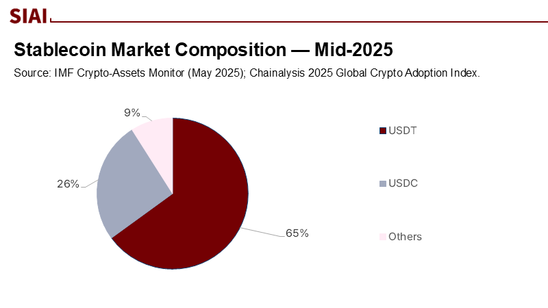 Reframing this debate is essential now, as the underlying infrastructure is rapidly evolving. IMF researchers predict approximately $2 trillion in stablecoin transactions by 2024, with Asia and the Pacific contributing over half a trillion and China-linked flows (both in and out) around $84 billion. By mid-2025, USDT and USDC combined held over $215 billion in market value, with Tether claiming nearly two-thirds of the market. Stablecoins are already being used for cross-border trade solutions where banks are either slow or sanctioned. Suppose China reduces this issue to a straightforward "ban versus allow" choice. In that case, it risks permitting tokenized dollars to gain a stronger foothold in Chinese commerce through gray channels, while renminbi instruments remain inaccessible.