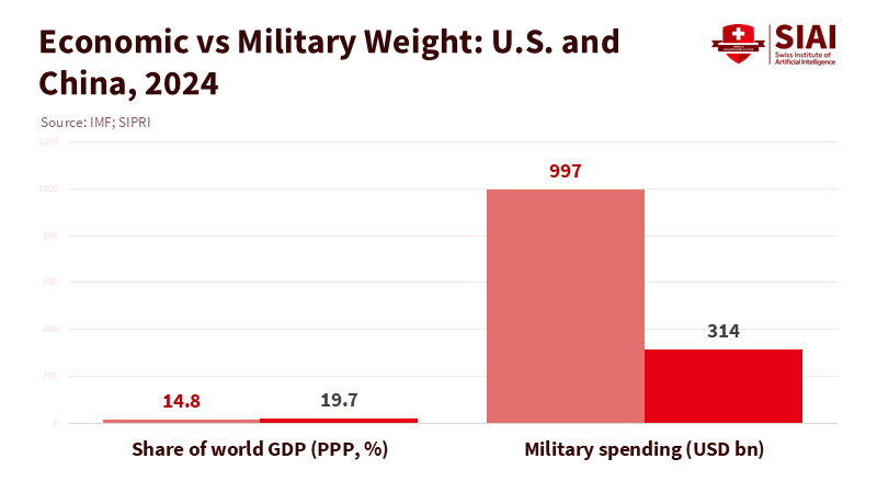 Across the global economy, one pair of numbers frames classroom discussions better than any war metaphor. In 2024, China represented roughly 19.7% of world output in purchasing power terms, while the United States accounted for about 14.8%. Yet, U.S. military spending reached approximately $997 billion, more than three times China's estimated $314 billion, and accounted for 37% of global defense spending. The situation is not a single "handover" moment, but rather a slope with varying gradients. Economic weight is shifting toward Asia, while military strength remains concentrated in America and its alliances. This mismatch is essential for education because knowledge, research funding, student movement, and institutional risk move along this slope rather than falling off a cliff. If we plan curricula and partnerships as if "the moment" will arrive all at once, we will misjudge both timing and policy. We should prepare for a lengthy transition, with different speeds across various areas, and it is through education that we can gain a nuanced understanding and empower ourselves with the necessary knowledge to navigate this transition.