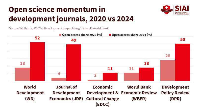 Quality control is not a matter of culture; it is a matter of operational effectiveness. Desk-rejection rates at leading development journals average approximately 72%, with acceptance rates after external review at around 39%. In some journals, overall acceptance can drop as low as 3%. Submissions have surged since 2016, putting pressure on editorial capacities. In this environment, speed and fairness stem from a disciplined process: short-paper tracks with binary decisions, editorial triage to verify design preregistration, and strict time limits on initial choices. Society-run journals have demonstrated how quickly a reputation can improve when rigorous processes are in place. Seven new society journals from major associations have rapidly climbed in rankings since their launch, primarily because they combined reliable editors, clear goals, and enforceable policies, rather than chasing brand recognition. Europe can adopt a similar strategy with the EEA, RES, CEPR, and national societies, prioritizing operational excellence and method standards first, allowing prestige to follow.