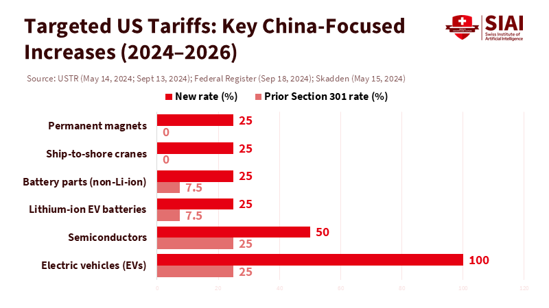 The evidence is clear. On a trade-weighted basis, U.S. tariffs averaged 2.2% in 2024, while the simple average was around 3.3%. This is not a universal tax wall. It serves as a modest baseline with specific pockets of intensity aimed primarily at China. In late 2024, the United States confirmed and refined Section 301 actions against Chinese goods, raising rates on a defined list of products like EVs, batteries, and specific critical inputs. In early 2025, more China-focused measures emerged. These actions did not convert the entire tariff schedule into triple digits. Instead, they created a two-tier landscape: most trade flows at very low rates, while a smaller set flows at much higher rates. This intentional design and narrow scope is why 'targeted US tariffs' can dominate headlines while the nation's average stays low.