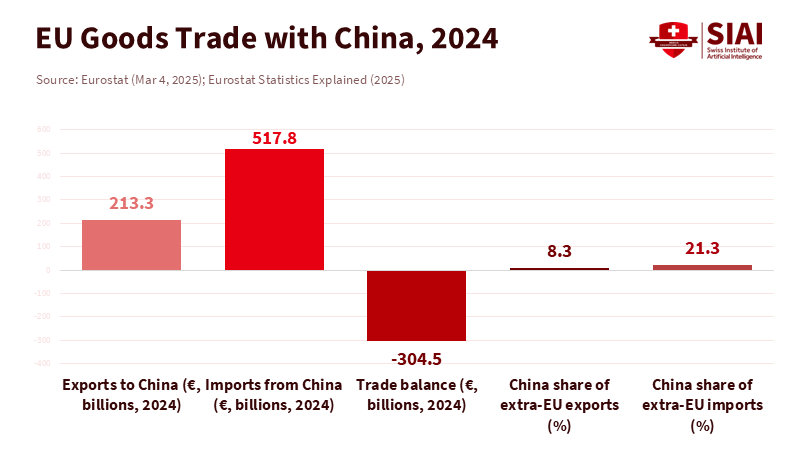 In 2024, the European Union ran a €304.5 billion goods deficit with China. Only 8.3% of exports from the EU went to China. This imbalance shaped the negotiations this year. Europe could wait; Beijing could not. Two more facts are essential. First, Brussels imposed five-year countervailing duties on Chinese battery-electric cars: 17.0% for BYD, 18.8% for Geely, and up to 35.3% for SAIC, in addition to a standard EU car tariff of 10%. Second, Washington established a 10% global baseline tariff in April 2025, with higher reciprocal rates on several countries later that summer. In this context, July’s EU-China summit in Beijing produced some symbolism but no breakthroughs. The stalled EU-China trade deal is not a failure in negotiation; it reflects a shift in leverage. Europe’s options outside a negotiated agreement have improved, while China faces mounting pressures at home and abroad. In this new situation, “no deal yet” is a strategy, not a sign of passivity.