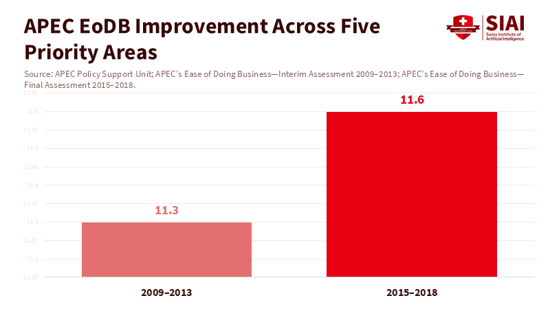 APEC is not a defense agreement. It is a voluntary platform that lowers trade costs. The last 25 years illustrate this point. Two waves of Trade Facilitation Action Plans have reduced region-wide transaction costs by 5% each, while the Ease of Doing Business initiative improved performance by 11.3% from 2009 to 2013 and by 11.6% from 2015 to 2018. These are not soft goals. They represent faster permits, more efficient customs processes, and fewer port delays. The benefits accumulate year after year. They are also lasting because they exist within domestic systems, not in one significant deal. That is why APEC economic cooperation continues to yield results even during political challenges.
