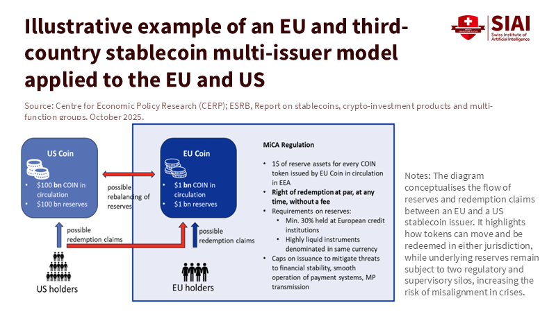 Recent signals heighten the stakes. Europe's risk watchdog has suggested a ban on multi-issuance arrangements, citing the danger that no single authority or balance sheet supports a coin during a crisis. The new ESRB report cautions that crypto assets, particularly stablecoins, have entered the financial mainstream, aided by policies abroad. It highlights the sharp rise in global market value since 2023 and calls for stronger risk management tools. Those points are accurate. However, they argue for backstops rather than bans. A ban would leave Europe dependent on foreign coins it cannot regulate, and it would cut off a design that can absorb shocks when supported by the right buffers. A better interpretation of Europe's own experience is to build the essential institutions rather than retreat from growth.