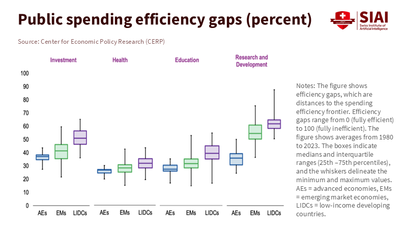Public spending efficiency also enhances trust in democracy. Recent research using OECD data indicates that higher spending efficiency corresponds with greater trust in government. Trust is not a trivial aspect; it signals performance, reduces risk, and creates space for long-term reform. When citizens observe improvements like better schools, faster permits, and shorter waiting lists—all achieved within existing budgets—they are more willing to accept the tougher adjustments that efficiency demands in other parts of the government. Therefore, the political benefits of efficiency are two-fold: it frees up resources. It builds the necessary support for reallocating them. This is vital as fiscal rules tighten in Europe and pressures from aging populations, defense needs, and climate change grow. Public spending efficiency can play a significant role in addressing these societal challenges, underscoring its broader impact and relevance.